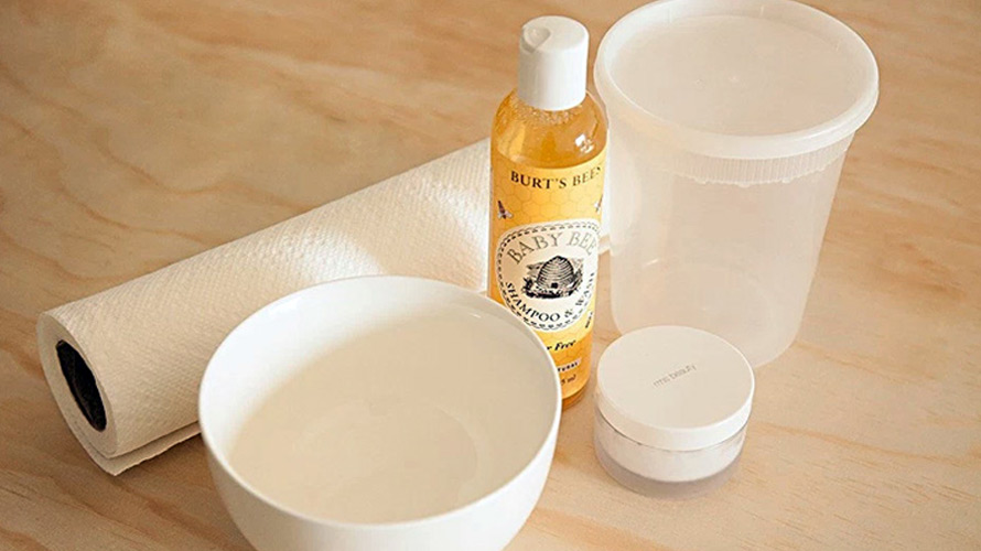Isıya dayanıklı bir cam kasenin içerisine suyu, hindistan cevizi yağını, bebek şampuanını ekle ve iyice karışmasını sağla.